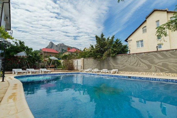 Гостиница «Славия» расположена в одном из самых живописных уголков Коктебеля – по соседству с заповедной зоной у подножия горного массива «Кара-Даг». Дорога к морю и чистым галечным пляжам проходит через плато «Тепсень» с которого открывается прекрасный вид на Коктебельскую бухту, или через поселок. В 10 минутах ходьбы расположен магазин, а в 15 минутах небольшой рынок.