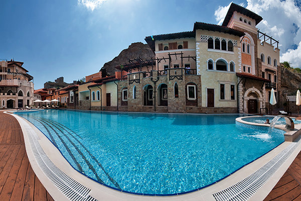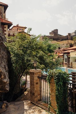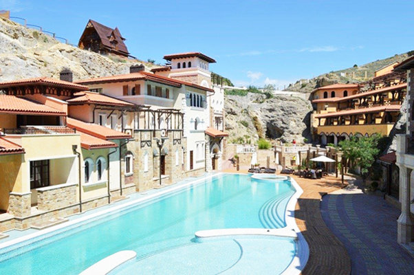 Soldaya Grand Hotel & Resort расположен в городе Судак, юго-восточной части Крымского полуострова, которую по праву можно назвать родиной виноградарства и виноделия в Крыму. Отель был построен в 2014 г. и находится в тихом и уютном месте, в нескольких минутах ходьбы от пляжа и набережной Судака. В пешей доступности от Soldaya Grand Hotel & Resort возвышается знаменитая Генуэзская крепость – величественный памятник средневековой истории и визитная карточка региона. Неслучайным был выбор и в названии отеля. Итальянское слово «Солдайя», включенное в основу название отельного комплекса Soldaya Grand Hotel & Resort, связывает нас с ушедшей эпохой пересечения культур на этой земле.