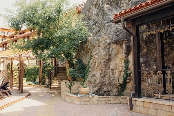 Гриль-бар — «Грот» расположение: природный скальный грот на территории отеля; кухня: европейская, средиземноморская; время работы: с 11:00 до 23:00