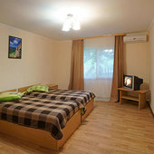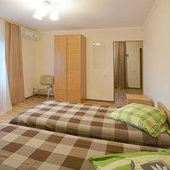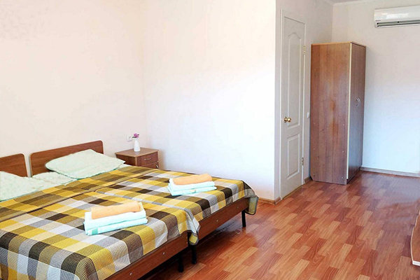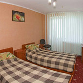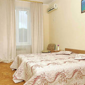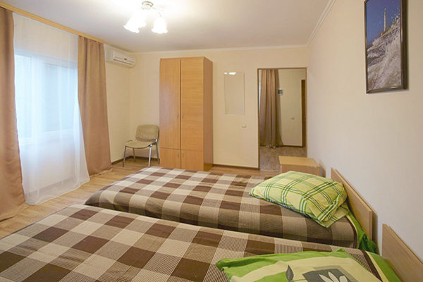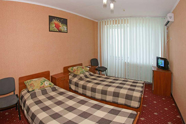 Самолетом до аэропорта г.Симферополь, далее до автостанции "Курортная", далее автобусом до п. Черноморского, далее маршрутное такси или такси до пансионата.