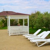 - песчано-галечный пляж, оборудованный шезлонгами;