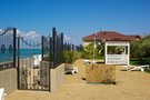 Песчано-галечный пляж пансионата представляет собой участок длиной около 200 метров. Его ширина при этом колеблется от 15 до 20 метров.