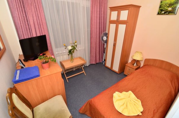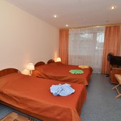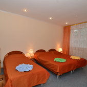 Междугородним автобусом до автовокзала г.Симферополь, далее с микрорайона М.Жукова идут городские маршрутки до пос. Николаевка, далее до пансионата на такси или пешком.