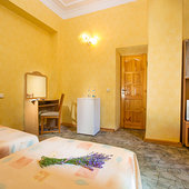 Номера оснащены необходимым набором мебели, телевизором с кабельным ТВ, холодильником, кондиционером, санузлом с душевой кабиной, в качестве дополнительного места предлагается еврораскладушка.
