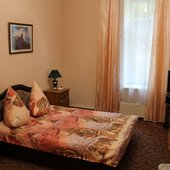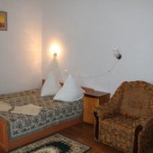 Номера расположены в двух корпусах, категории от эконом до люкс двухкомнатный. Питание в столовой на территории. Парковка авто на территории. Спортивная площадка для детей и взрослых. Для развлечения по вечерам бильярдная.