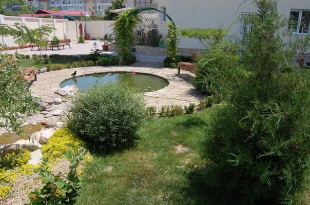 В гостинице собрана большая коллекция хвойных деревьев. Маленький водопад приятным журчанием поможет расслабиться,а под кронами плакучей ивы будет прохладно и уютно.