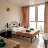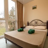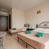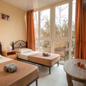 Жилые корпусы санатория «Свет Маяка» расположены на первой береговой линии. Расстояние до пляжа – 50 и 100 метров.