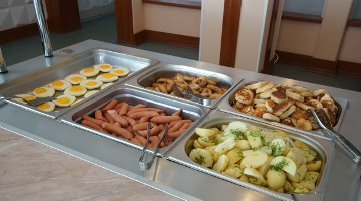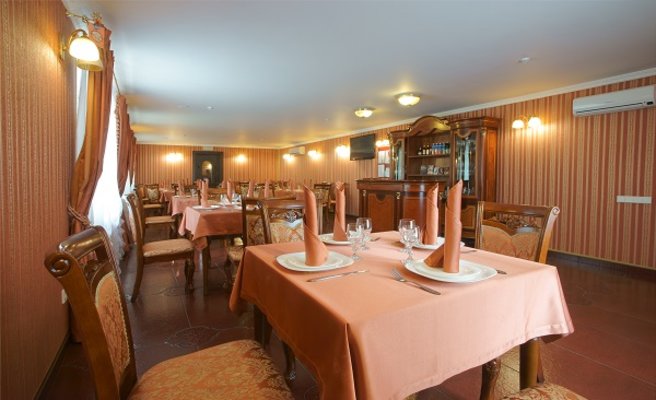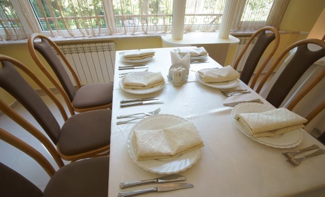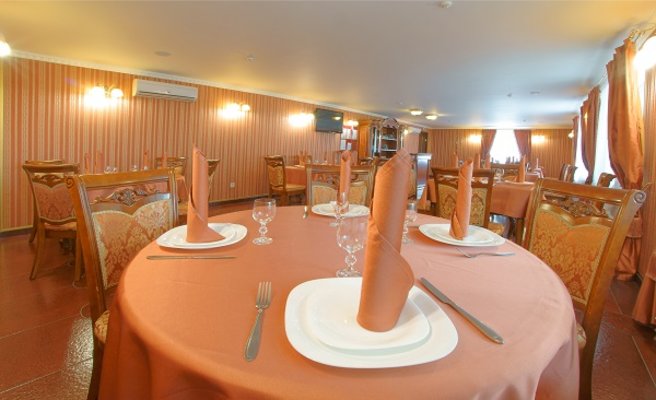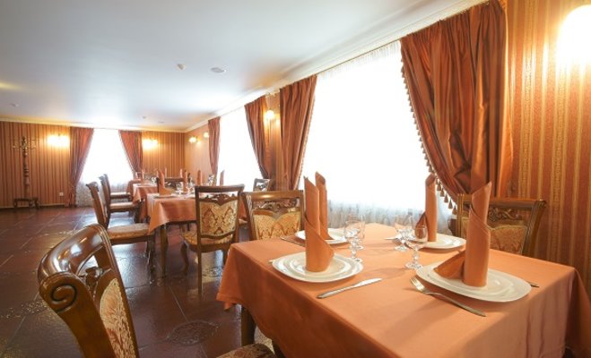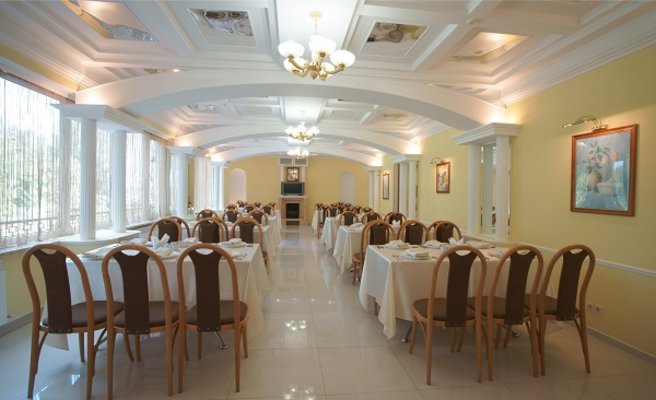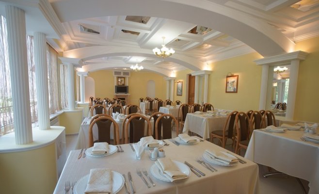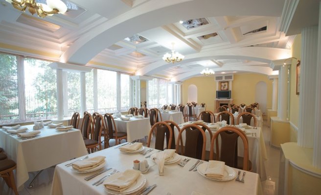 Обеденный зал — отдельное здание, европейская кухня, завтрак «шведский стол» 07:30-10:00