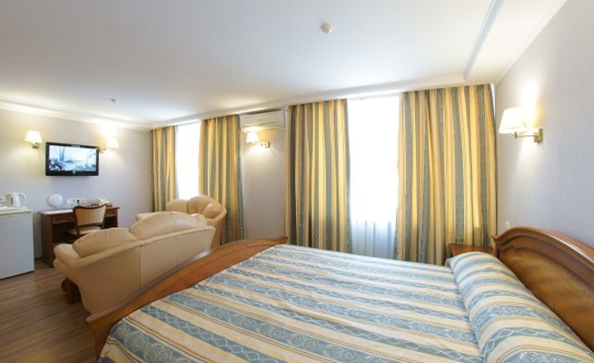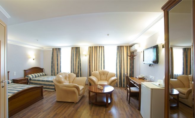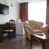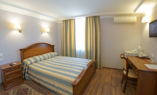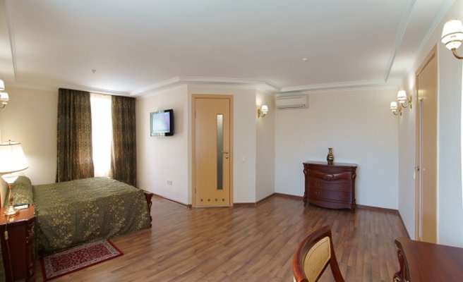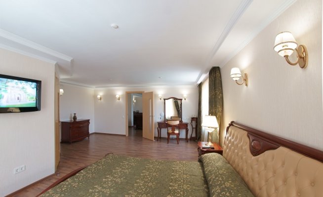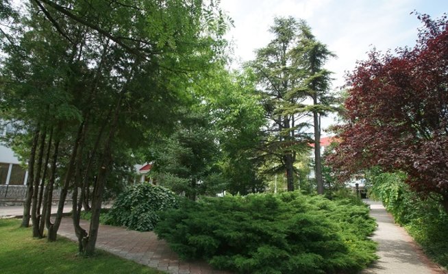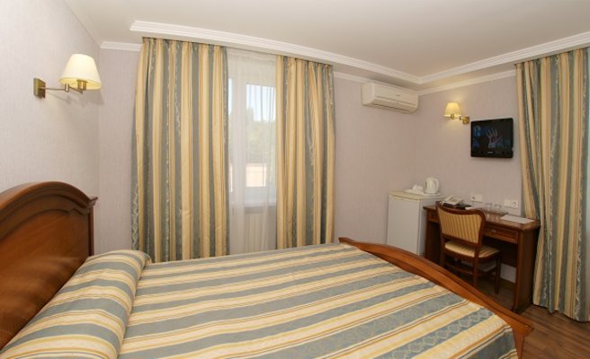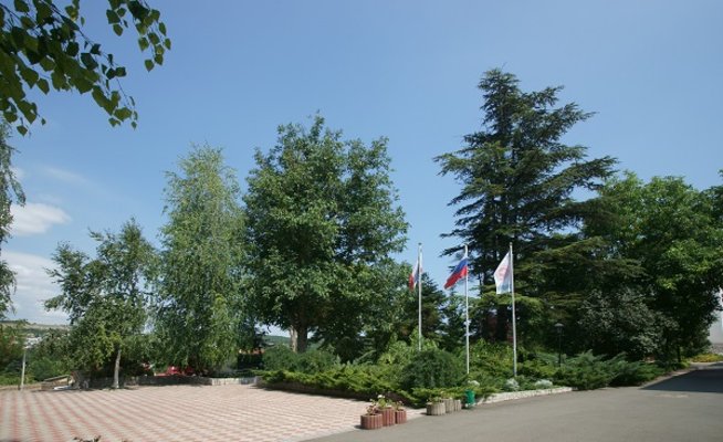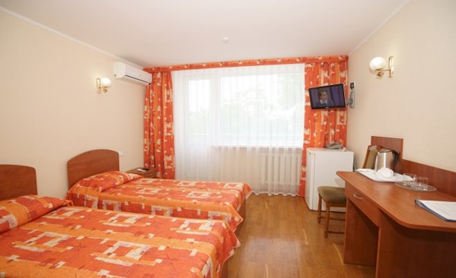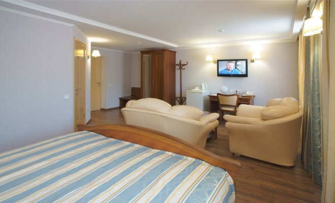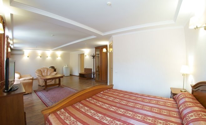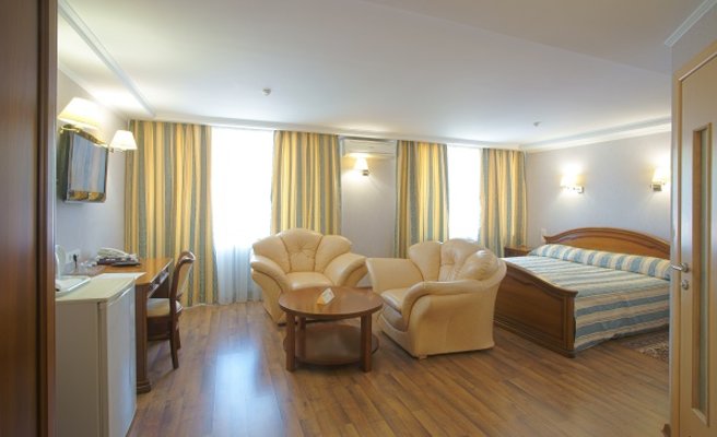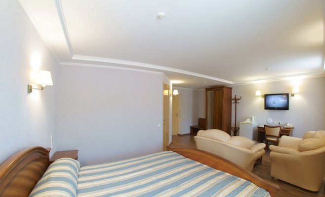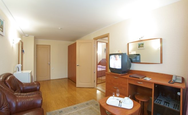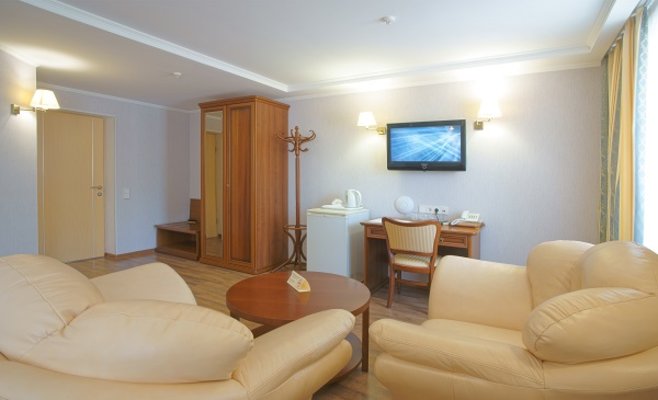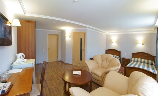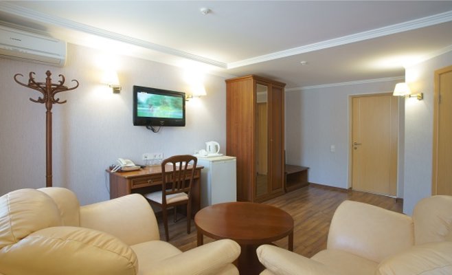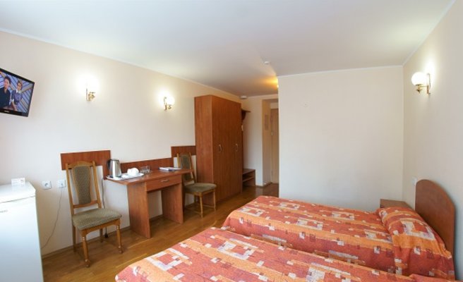 Комплекс занимает благоустроенную территорию с парковой зоной площадью 1,7 гектаров и включает в себя два спальных корпуса в 4 и 5 этажей (без лифта). Жилой фонд предлагает гостям номера разных степени комфорта — от «Эконома» до «Джуниор Сьюта».