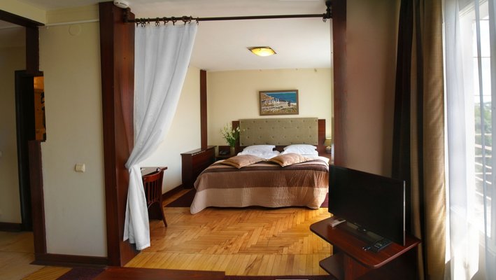 Арт-отель «Украина» располагается в центре солнечного Севастополя, в 325 м от пляжа. По сути, это не просто отель, это настоящий центр притяжения интеллигенции. Лучшие живописцы приезжают на знаменитый Севастопольский пленэр и создают свои самые знаковые этюды. В творческих вечерах участвуют поэты, писатели и музыканты. Отдыхающие оценят высокий уровень сервиса — для общения, работы или просмотра кино по всей территории действует бесплатный Wi-Fi. Сюда легко добраться разными способами — можно воспользоваться общественным транспортом, парковкой рядом со зданием, или платным трансфером.