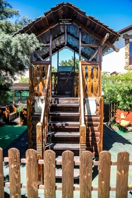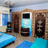 Усадьба «Рыцаря Эдварда Остера. Дом дракона» находится в 300 метрах от Черного моря в поселке Черноморское. К услугам гостей место на автомобильной парковке с видеонаблюдением, бесплатный доступ в Интернет, и по предварительному запросу разрешается проживание с домашними животными.