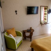 В отеле номера оборудованы кондиционером, телевизором, холодильником, ванной комнатой, шкафом, тумбой, креслом и диваном. Каждый номер выполнен в индивидуальном стиле. За дополнительную стоимость можно взять на прокат велосипед, имеется бассейн, кинопроектор и зона барбекю со всеми приборами.