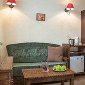 Питание в санатории трехразовое, осуществляется в столовой (для всех категорий номеров) и в ресторане «Elephant» (для категорий Студия и Люкс в 4-м корпусе).