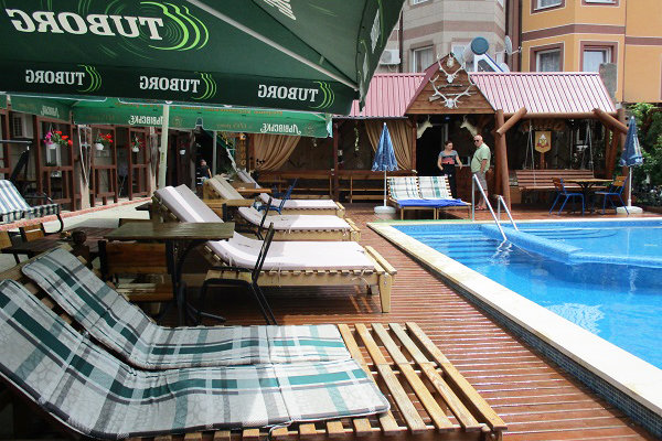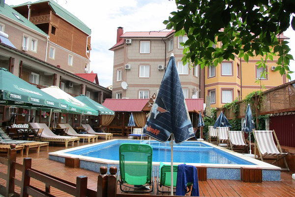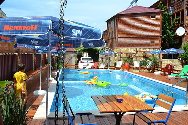 Гостиница имеет открытый бассейн с детской зоной, батут, семейные качели. Работает уютное летнее кафе с площадкой. Открытая охраняемая парковка расположена в 200 м. от отеля.