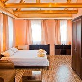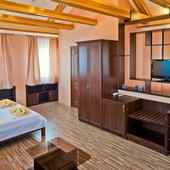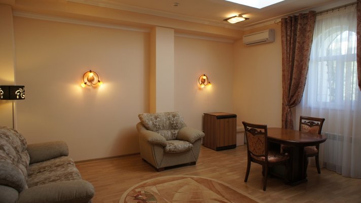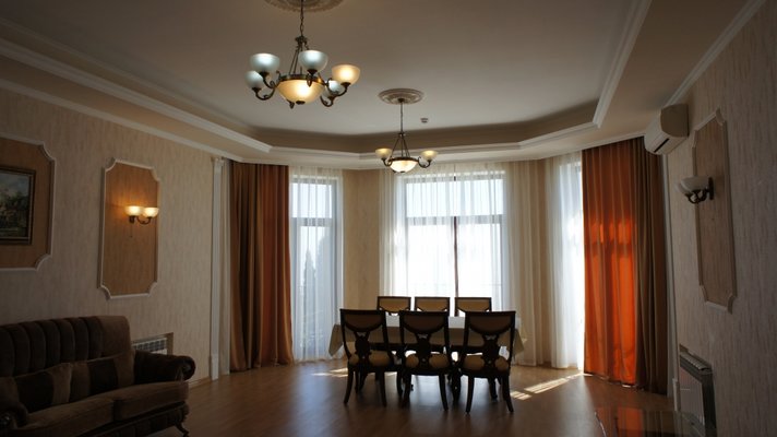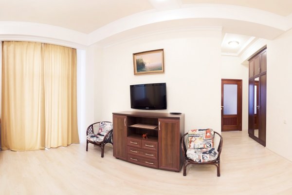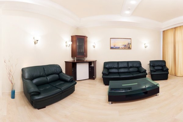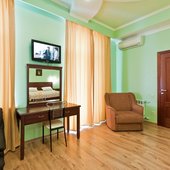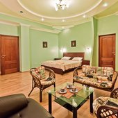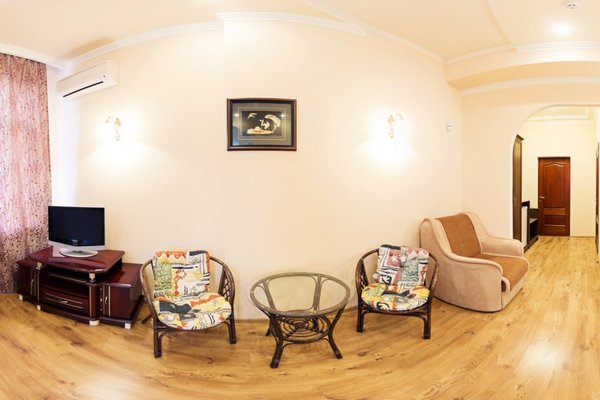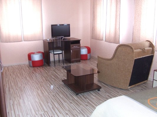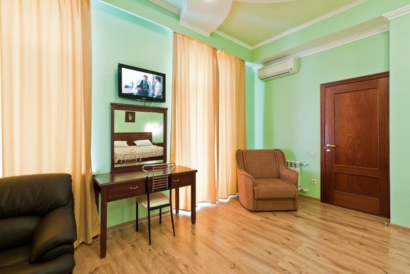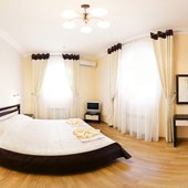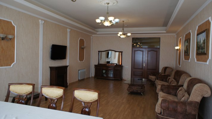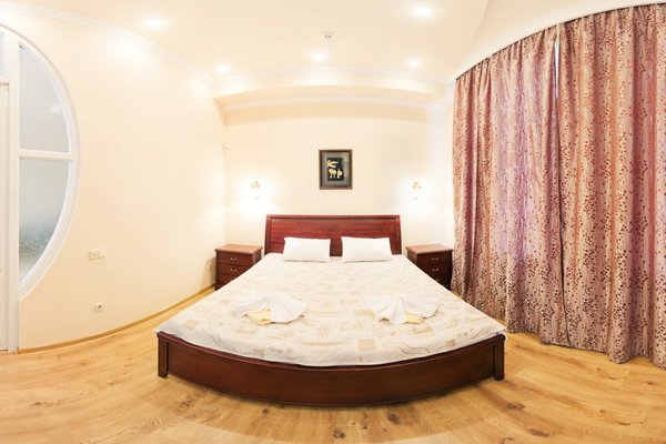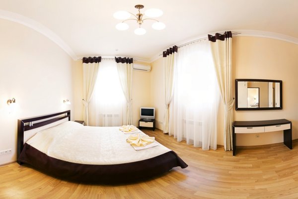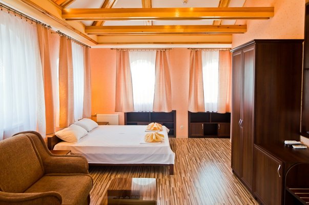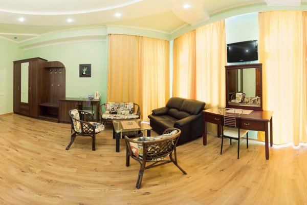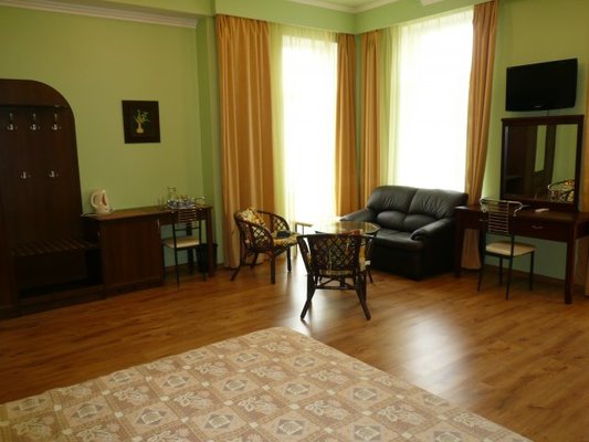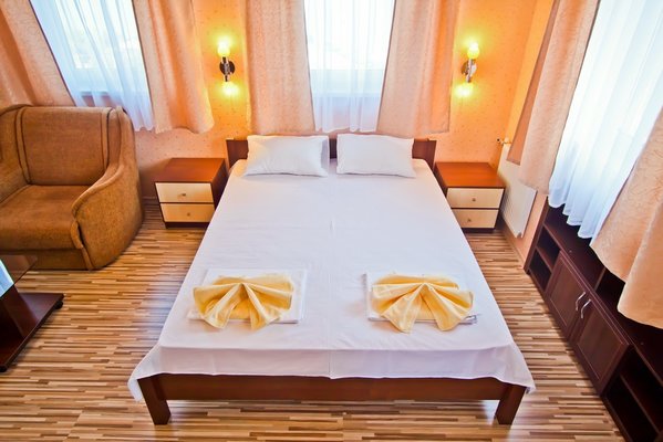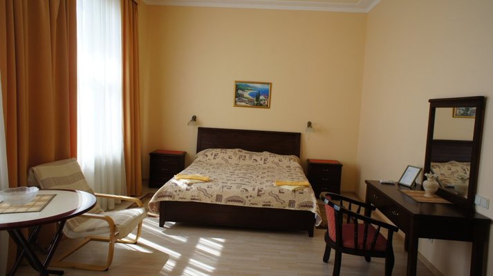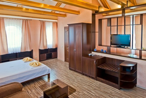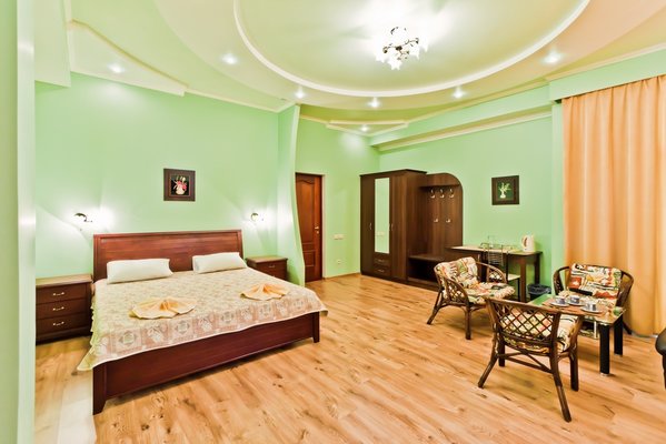 Гостевой дом располагает номерами различных категорий: от «Стандарта» до «VIP». В номерах есть удобная кожаная и деревянная мебель, телевизор, электрический чайник, балкон.