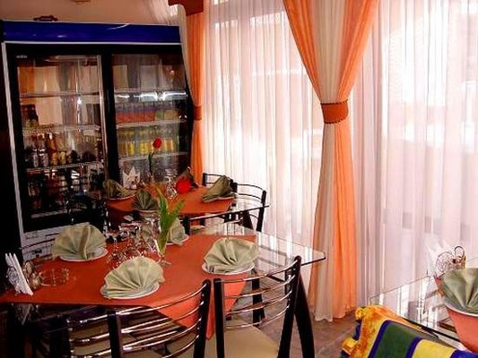 Каждое утро отдыхающим подают завтраки, которые включены в проживание. За дополнительную плату можно организовать питание на протяжении всего дня. По запросу предоставляется детское и диетическое меню. Так же есть бар с алкогольными и безалкогольными напитками.