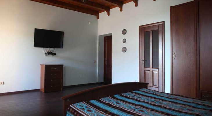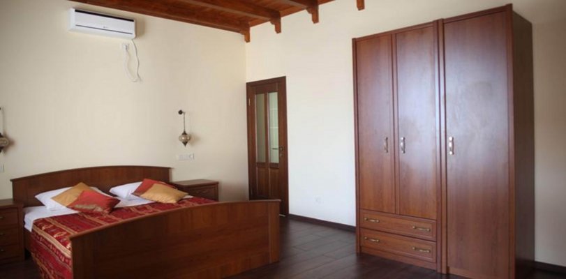 Для гостей готовят домашние блюда из натуральных продуктов, а стол могут накрыть в обеденном зале или на террасе у бассейна. Общая кухня оборудована холодильником, плитой и кофеваркой.