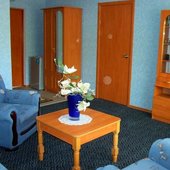 Номерной фонд представлен пятью типами номеров, от двухместного «Эконома» до двухкомнатного «Люкса». Для удобства клиентов предусмотрена спальная и мягкая мебель, шкаф для хранения одежды, кондиционер, телевизионная и бытовая техника.