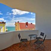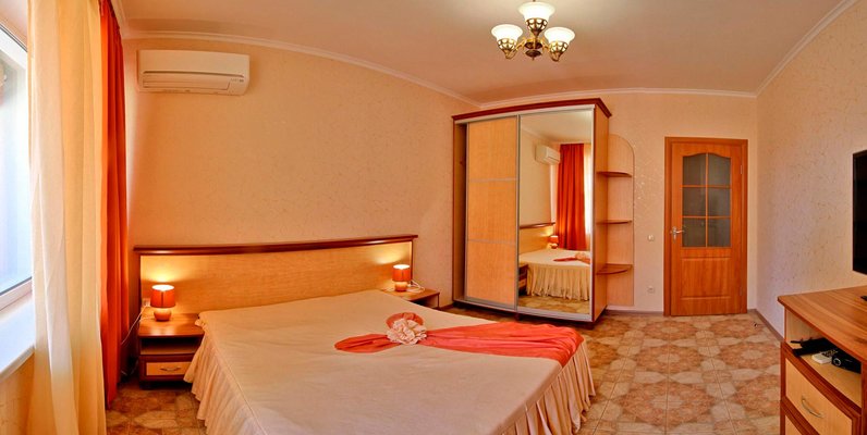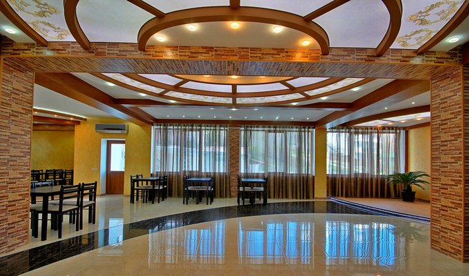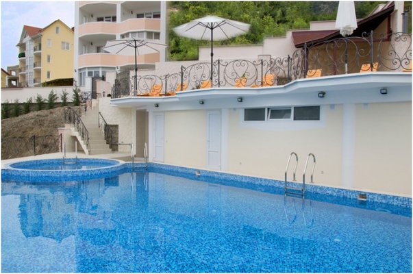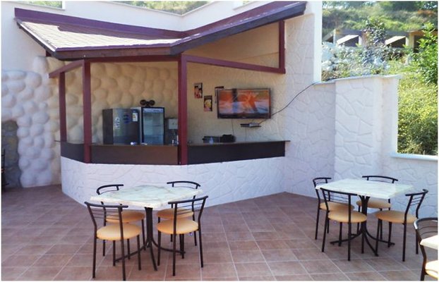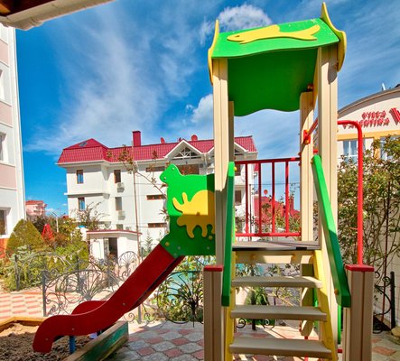Вилла «Алина» построена на второй береговой линии. Арендованный пляж с удобным пологим входом в воду находится в 350 метрах от корпусов.
