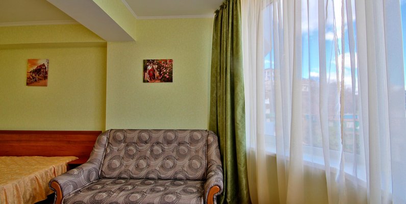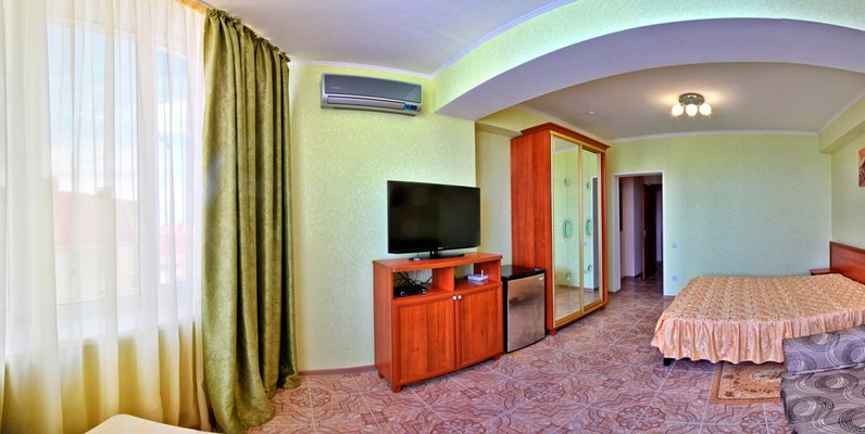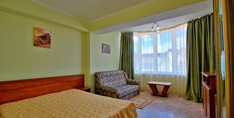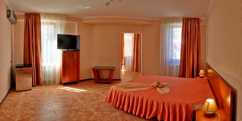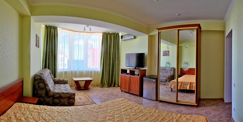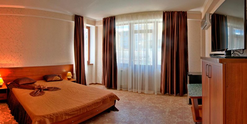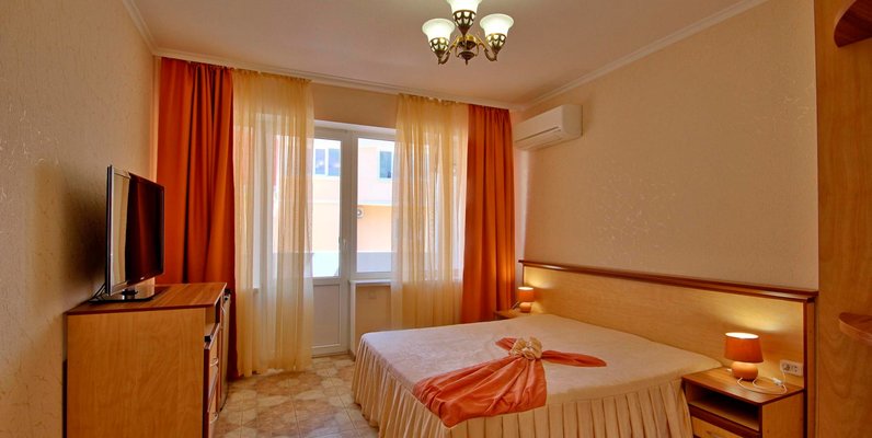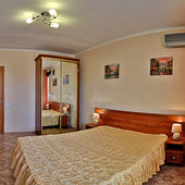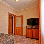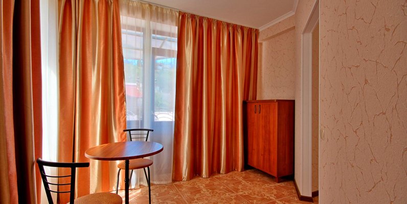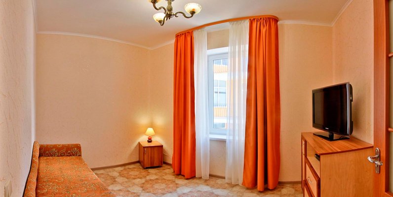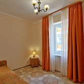В распоряжении отдыхающих три жилых здания на закрытой благоустроенной территории. Пятиэтажные корпуса № 1 и № 2 (без лифтов) располагают равным числом номеров. В них 4 однокомнатных и 8 двухкомнатных. В шестиэтажном корпусе № 3 (с лифтом) только однокомнатные номера.