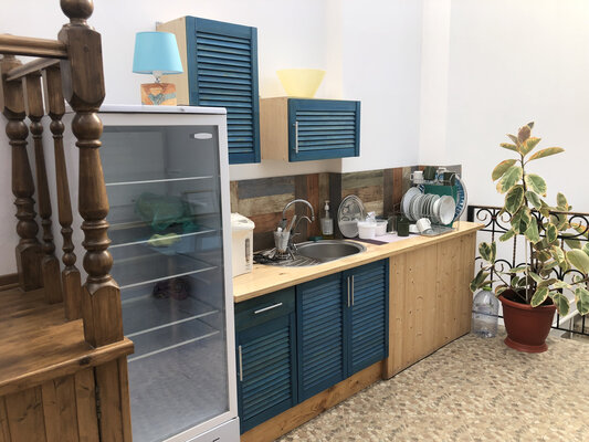 На территории отеля есть общая кухня, мангал во дворе и терраса на крыше, где вы сможете отдохнуть и приготовить вкусный ужин. Бесплатный Wi-Fi доступен на всей территории. Ближайший пляж находится всего в 500 метрах от отеля, обеспечивая вам легкий доступ к солнцу и морю.