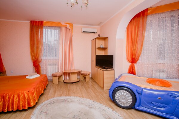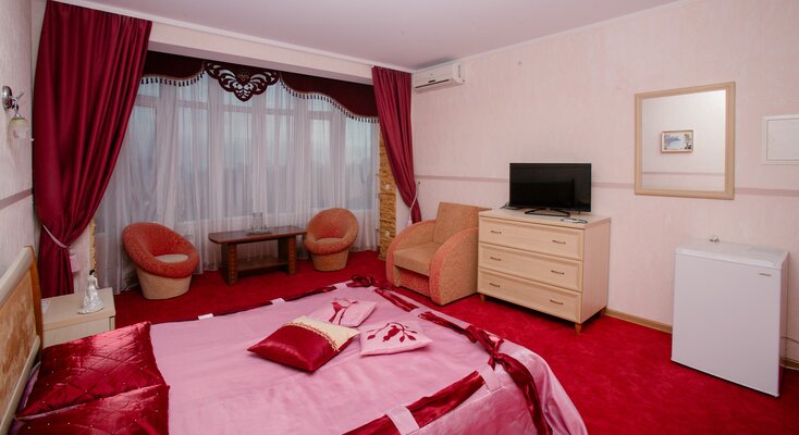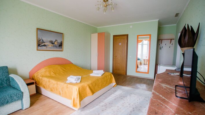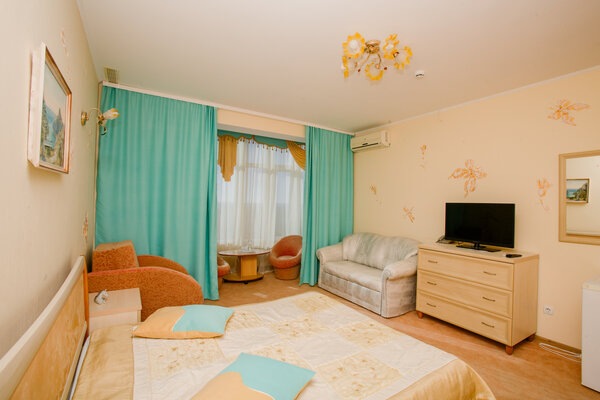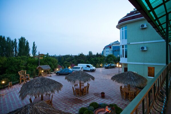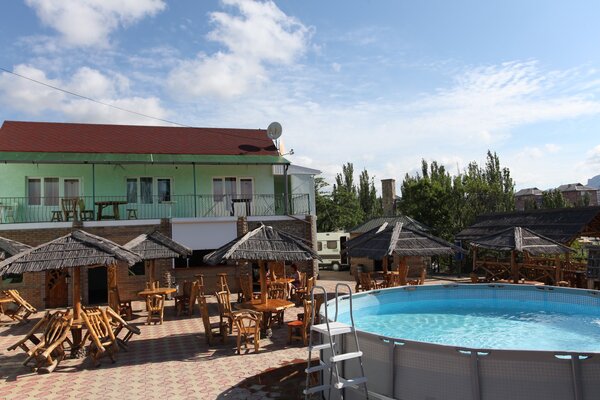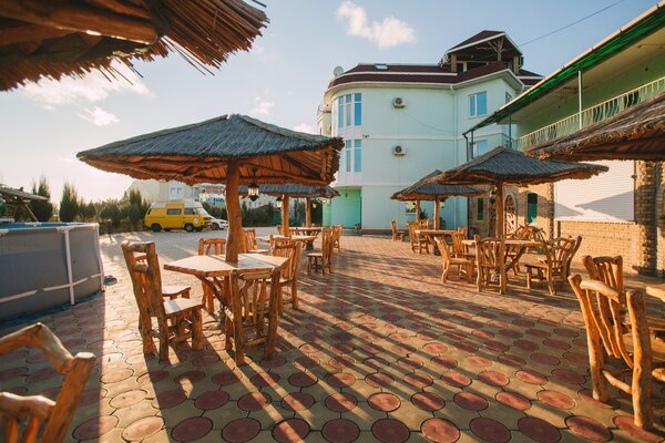 В доме работает уютное кафе, где вы сможете насладиться блюдами европейской и крымской кухни. Для вашего комфорта — сауна, массажный кабинет, охраняемая парковка, Wi-Fi, настольный теннис. Маленькие гости смогут повеселиться в небольшом бассейне и на игровой площадке с песочницей, качелями и батутом.