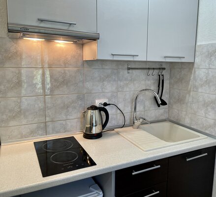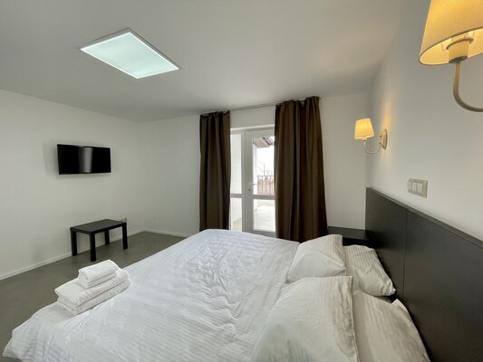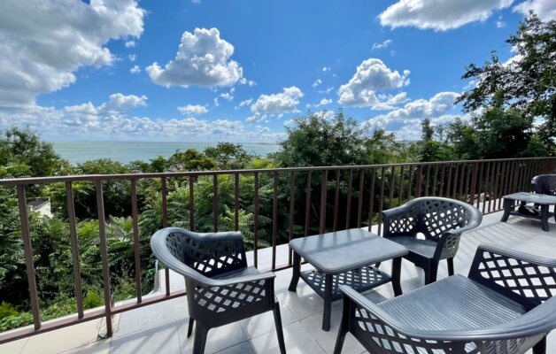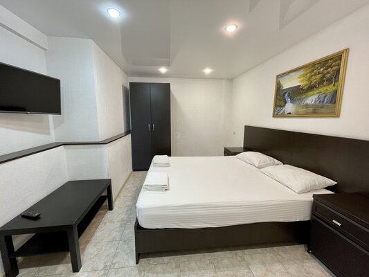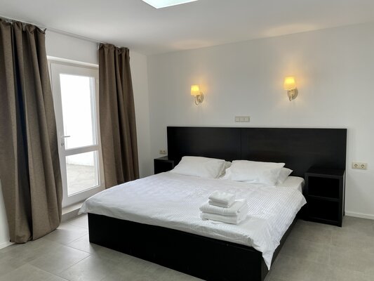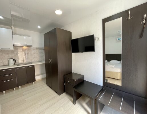 Уютные номера с панорамным видом на море, оборудованные комфортными кроватями, вместительными шкафами и всеми необходимыми удобствами: ЖК-телевизор, Wi-Fi, кондиционер, фен. Современные ванные комнаты с душевой кабиной. Полностью оборудованная кухня с гарнитуром, бытовой техникой и обеденным уголком. Бесплатная частная парковка на территории комплекса.