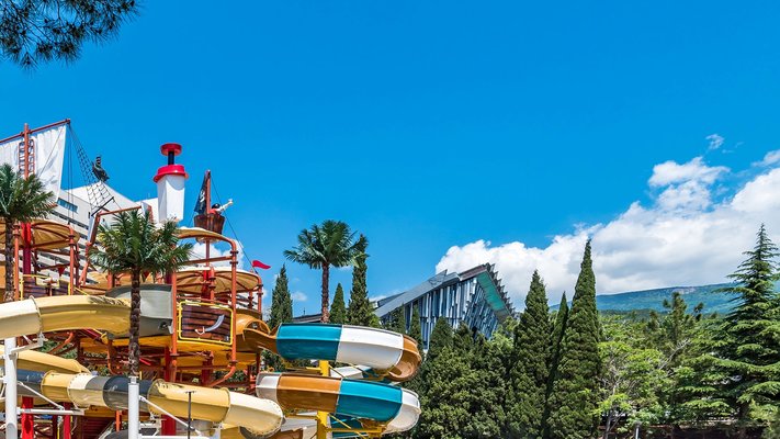 Аквапарк отеля «Ялта-Интурист» расположен в живописном парке у самого берега Чёрного моря! Аквапарк возведен международной компанией Polin Waterparks, которая является лидером в сфере водных аттракционов во всех странах мира.