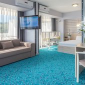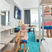 Данный отель – это большой, красочный мир, созданный специально для детей, с уникальной игровой зоной и детским теплым бассейном. Все желаемое – возможно, благодаря огромному выбору вкуснейших блюд, предлагаемых по программе «все включено» и приготовленных с душой и любовью в 25 ресторанах и барах отеля.