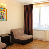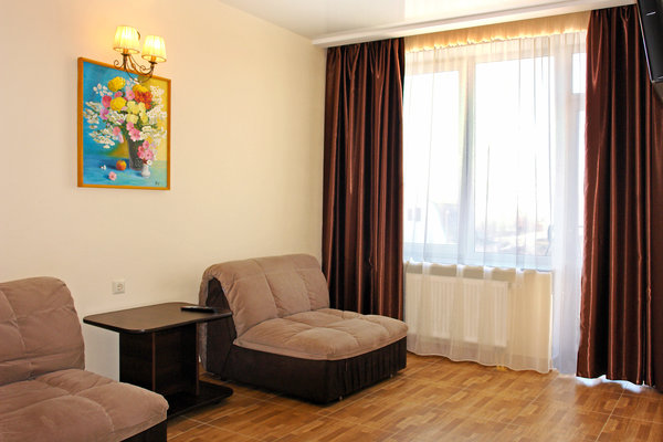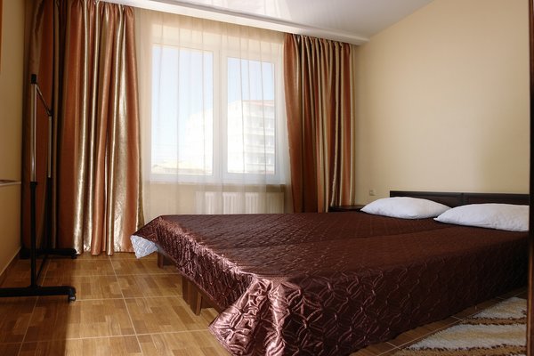 Трехэтажный жилой корпус расположен на закрытой территории площадью 8000 кв.м. Отдыхающим отель предлагает четырнадцать светлых номеров категорий Стандарт, Семейный и Студио. Номера укомплектованы комфортабельными мебельными гарнитурами, оснащены кондиционерами, телевизорами. В категории Студио и Семейный есть обеденная зона, в номерах на втором этаже имеются небольшие «французские» балкончики.