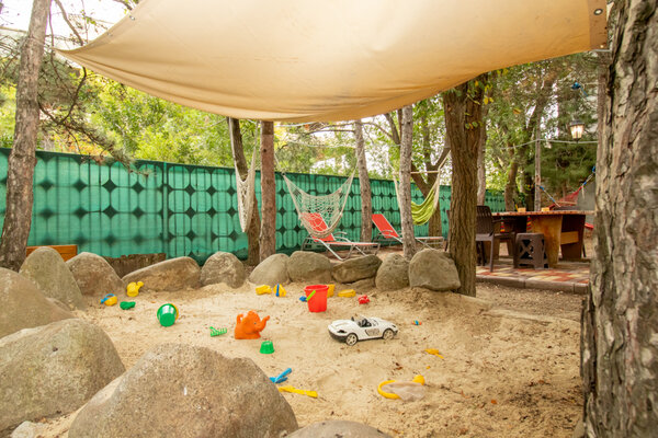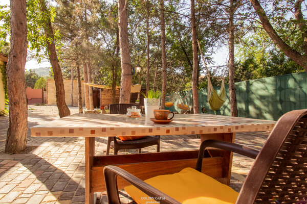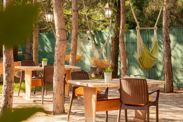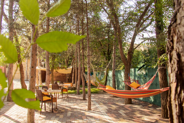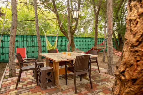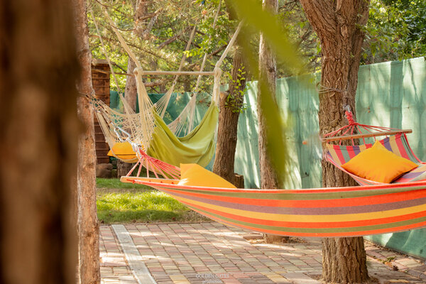 В тени деревьев вы найдете мангальную площадку, столики для отдыха и удобные гамаки. Для удобства гостей есть бесплатная парковка и беспроводной интернет.