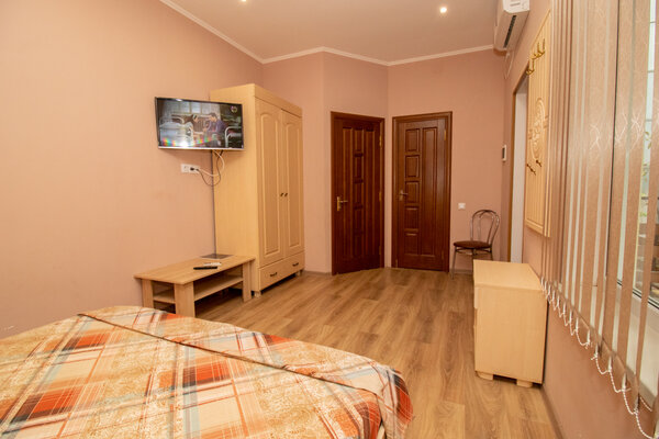 В вашем распоряжении два двухэтажных дома, оснащенных всем необходимым для комфортного отдыха. 8 комфортабельных номеров с индивидуальным санузлом с душем, кондиционером и плазменным телевизором. В апартаментах предусмотрена собственная кухня, оснащенная посудой и техникой.