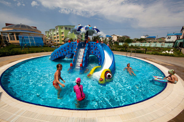 - детская летняя площадка с открытым детским бассейном и весёлой горкой в виде осьминога.