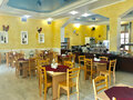 В прохладное время года можно расположиться на втором этаже ресторана. Интерьер помещения – позитивный, выполнен в светлых тонах. А летом будет уютно и прохладно одновременно на летней площадке, соединённой для удобства гостей с собственным пляжем санатория.