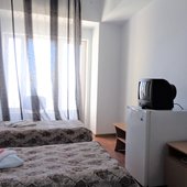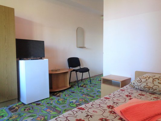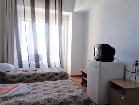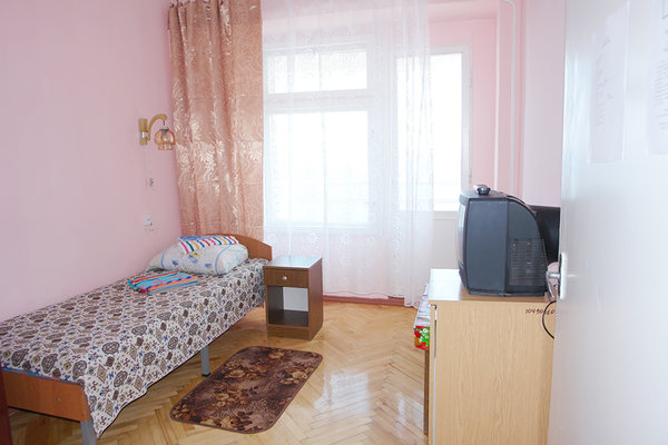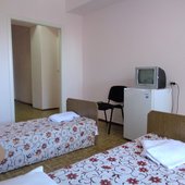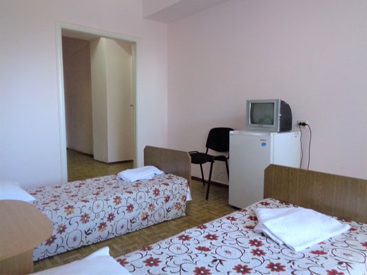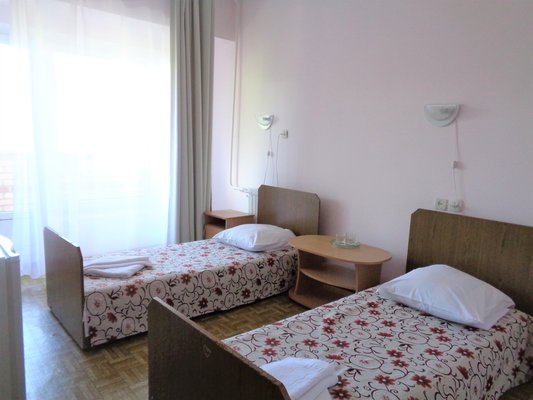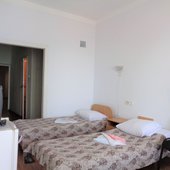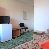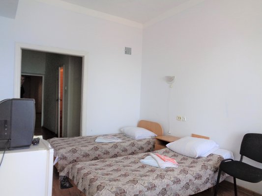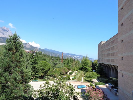 В одно- и двухместных номерах санатория с видом на Ай-Петри или море есть холодильники, телевизоры и санитарные удобства, горячая вода подается по графику.