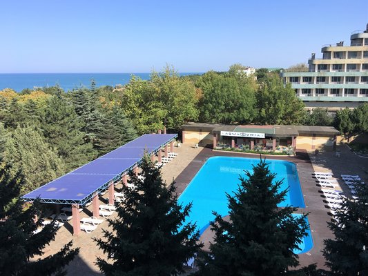На просторной территории пансионата к услугам гостей вкусное 3-разовое питание по системе "шведский стол" в столовой, детская и спортивная площадки, пляжный волейбол, медицинский пункт, детский и взрослый бассейны с пресной водой, аквааэробика, детская анимация и многое другое.