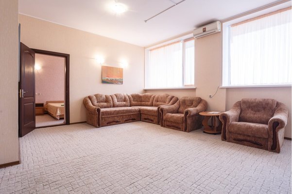 Номерной фонд представлен 6 категориями номеров, каждый из которых оборудован удобной мебелью, телевизором, холодильником, санузлом и балконом.