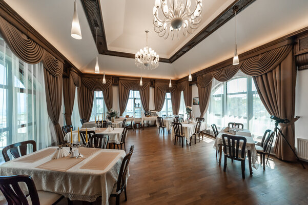 В гостевом доме «Замок» — есть зал (58 м2), который служит закрытым рестораном исключительно для наших гостей. В ресторане имеется большой экран с проектором для проведения семинаров, свадеб, презентаций и других мероприятий — до 20 человек.