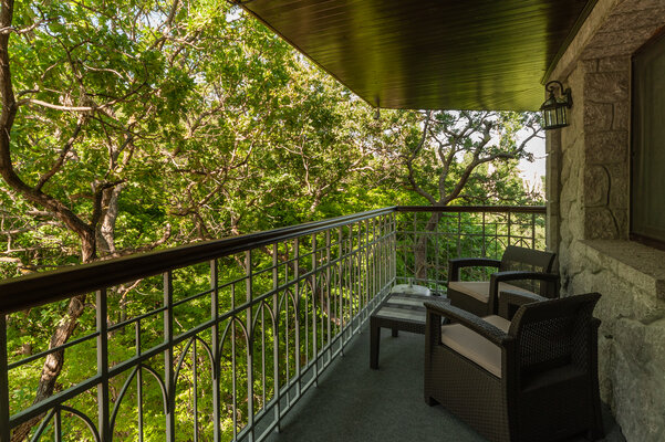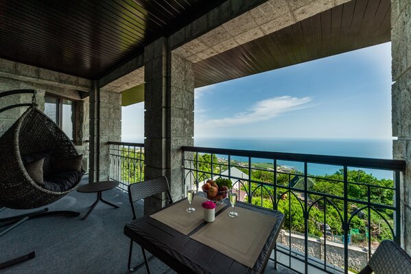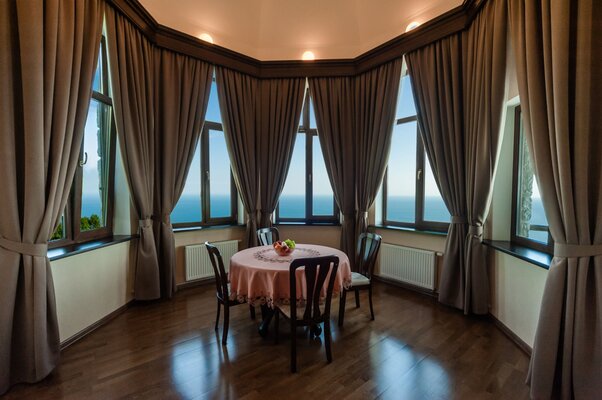 В здании гостевого дома «Замок» есть четыре этажа, на вершине которых находится Смотровая башня с панорамным видом на море и горы. На втором, третьем и четвертом этажах расположены уютные номера. На каждом этаже всего по два номера, оборудованные всем необходимым для комфортного пребывания.