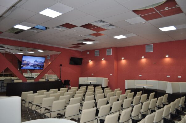 Для Вашего успешного мероприятия имеются четыре зала, оборудованных для проведения конференций, в каждом установлены: ноутбук, флип-чарт с бумагой и маркерами, широкоформатный телевизор 55 либо 70 дюймов, в зависимости от зала, презентером, удобными мягкими стульями с пюпитрами. Большой зал оснащен также портативной аккустической и беспроводной радиосистемой. В каждом зале установлена принудительная вытяжная и приточная вентиляции, система кондиционирования, кулера с холодной и горячей водой. Один зал на 100 мест и три по 35 мест. Цена договорная, зависит от наполняемости.
