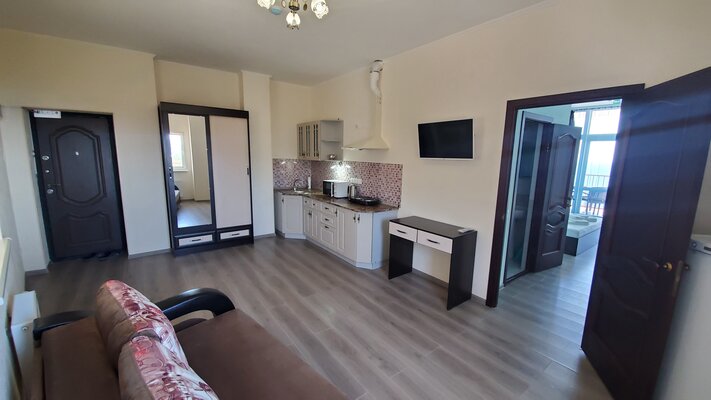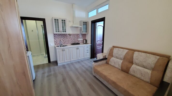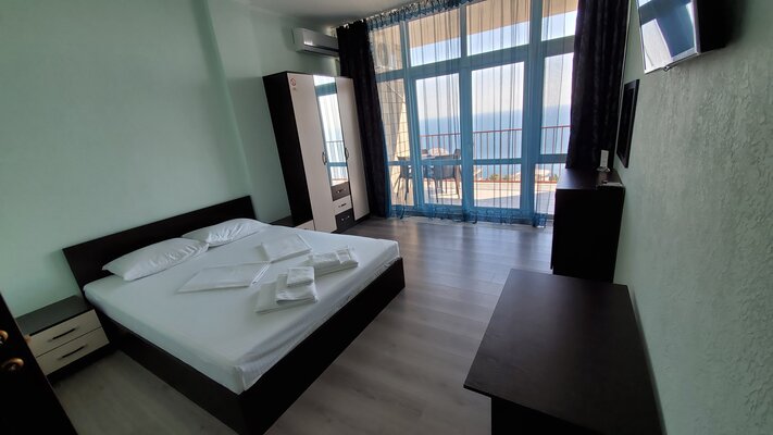 Отель-апартаменты, расположенный в четырехэтажном здании, находится в окружении экологически чистой природы, насыщенной горным воздухом и благоухающим хвойным лесом, рядом с уникальным старинным парком и оливковой рощей. Гостям предлагаются уютные номера с просторными меблированными балконами, где в большинстве комнат есть собственная мини-кухня и отдельный вход. В каждом номере имеется кондиционер, ЖК-телевизор, электрический чайник, фен и небольшой холодильник. В ванных комнатах гостей ожидают халаты и наборы косметических принадлежностей.