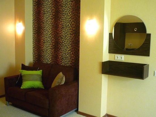 Все номера оснащены телевизором, WI-FI, мягкой мебелью, телефоном и холодильником. Помещения класса «люкс» разделяются на гостиную и спальную части, имею по два балкона. Для удобства и безопасности комнаты оборудованы сейфом.