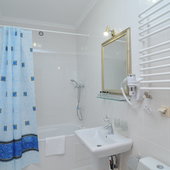 - «Комфорт» площадью 12 кв.м. в номерах есть необходимая мебель, техника, санузел с душем, посуда и беспроводной интернет;