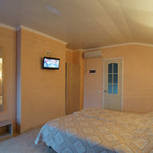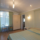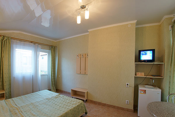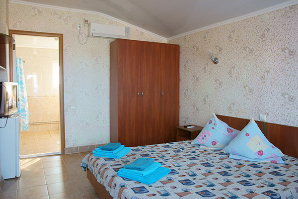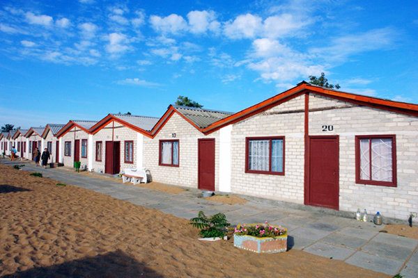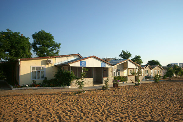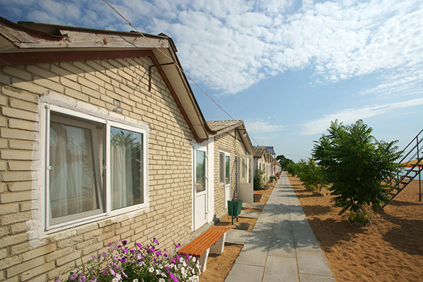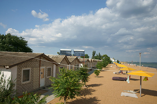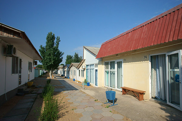 Для проживания и размещения гостям ТОК «Золотой пляж» предоставляются деревянные летние домики, а так же одноэтажные каменные коттеджи.