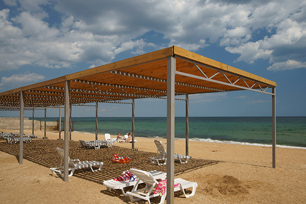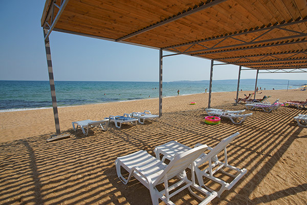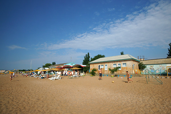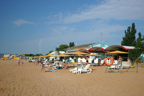 На берегу Феодосийского залива, следи золотистых песчаных пляжей, в семи километрах от Феодосии в поселке Береговое, расположился знаменитый туристический оздоровительный комплекс «Золотой пляж».