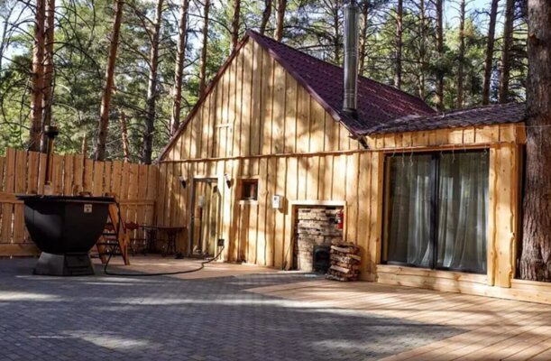 - большая парная с отдельными парильными столами и видом на лес;