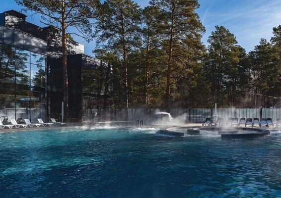 Находится в отдельном здании у бассейна. t° 65-80, влажность 20%, рекомендуемый заход 15 минут, вместимость 50 человек.