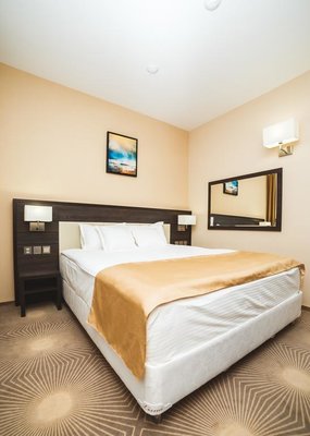 Номерной фонд «Аквамарин» содержит 35 номеров категории «Стандарт», «Панорамный», «Студия», «Семейный», «Люкс».