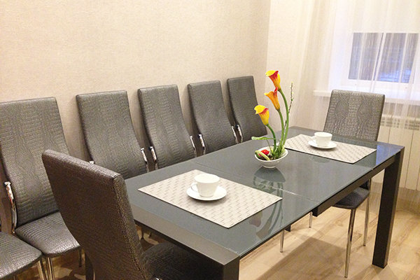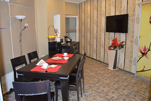 Восьмиэтажное здание, оборудованное лифтом, возвышается на благоустроенной охраняемой территории. Номерной фонд предлагает гостям номера категории «Эконом», «Стандарт», «Бизнес», оборудованные мини-кухней, санузлом и укомплектованные всей необходимой мебелью и техникой, включая мультиварки и микроволновые печи.