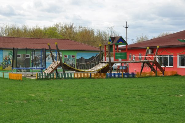 На территории комплекса имеется большая детская площадка с батутами, качелями и горками.